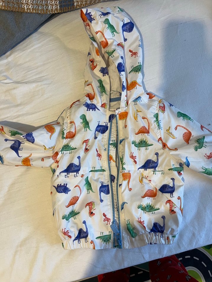 Çok az kullanıldı sıkıntısız temiz hasarsız. Bahar ayalarında kullanılan çok rahat bir ürün. Erkek çocuklar için dinozor desenli, kapüşonlu ve fermuarlı, sentetik kumaştan yapılmış, sokak modasına uygun hafif ve canlı renklerde yağmurluk