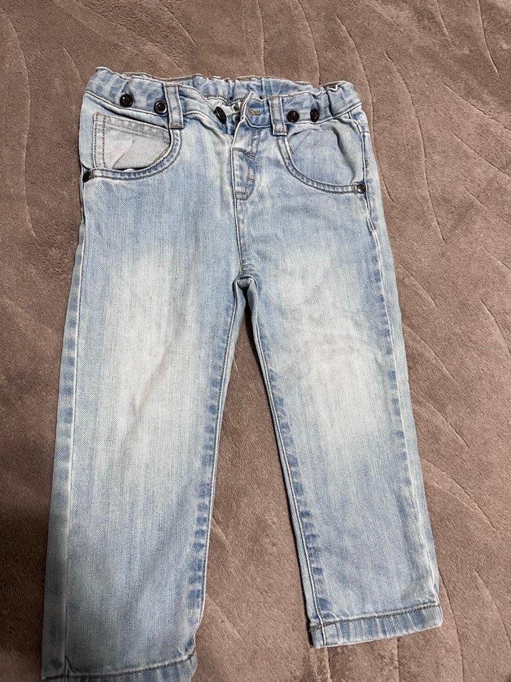 Erkek çocuk için düğmeli, regular fit kesimde denim pantolon.