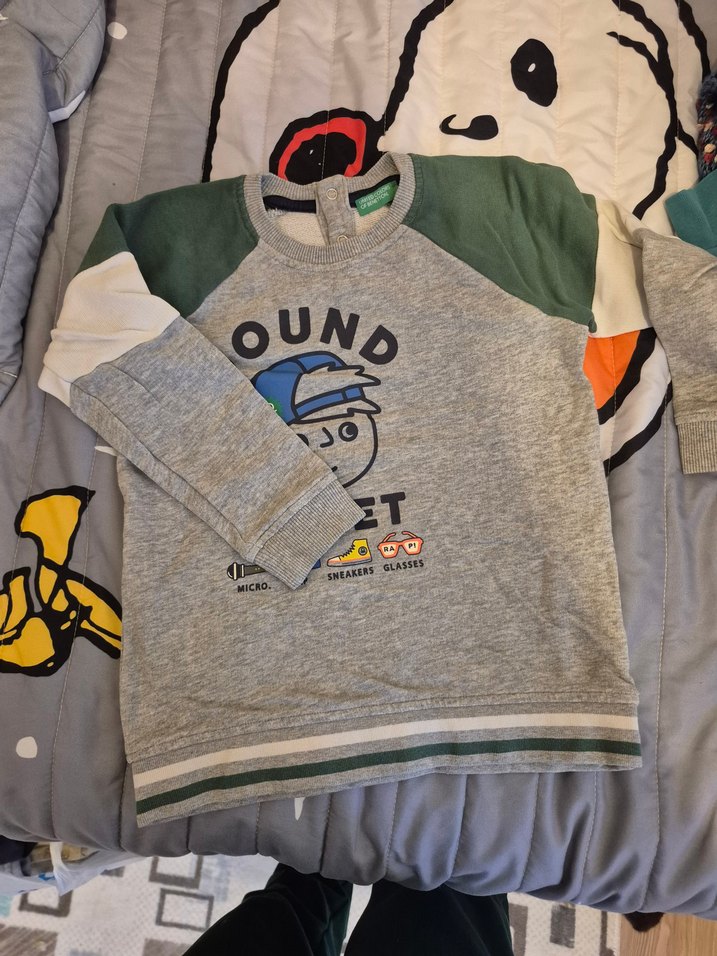 Erkek çocuklar için düğmeli, uzun kollu ve bol kesim gri sweatshirt. Yumuşak ve sıcak kumaş, baskılı desenler içerir.