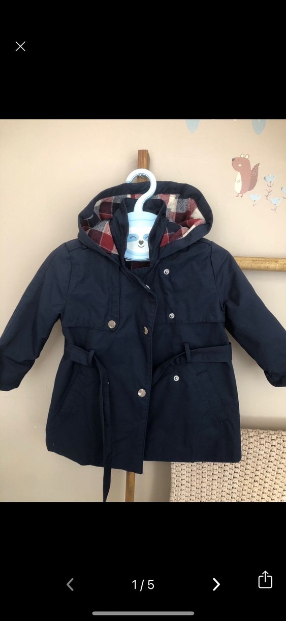 Düğmeli önü, kesimli yaka ve kapüşonlu, içi yumuşak kareli kumaşla kaplanmış erkek çocuk montu. Bol kesim ve kemerli, günlük rahat kullanım için ideal.