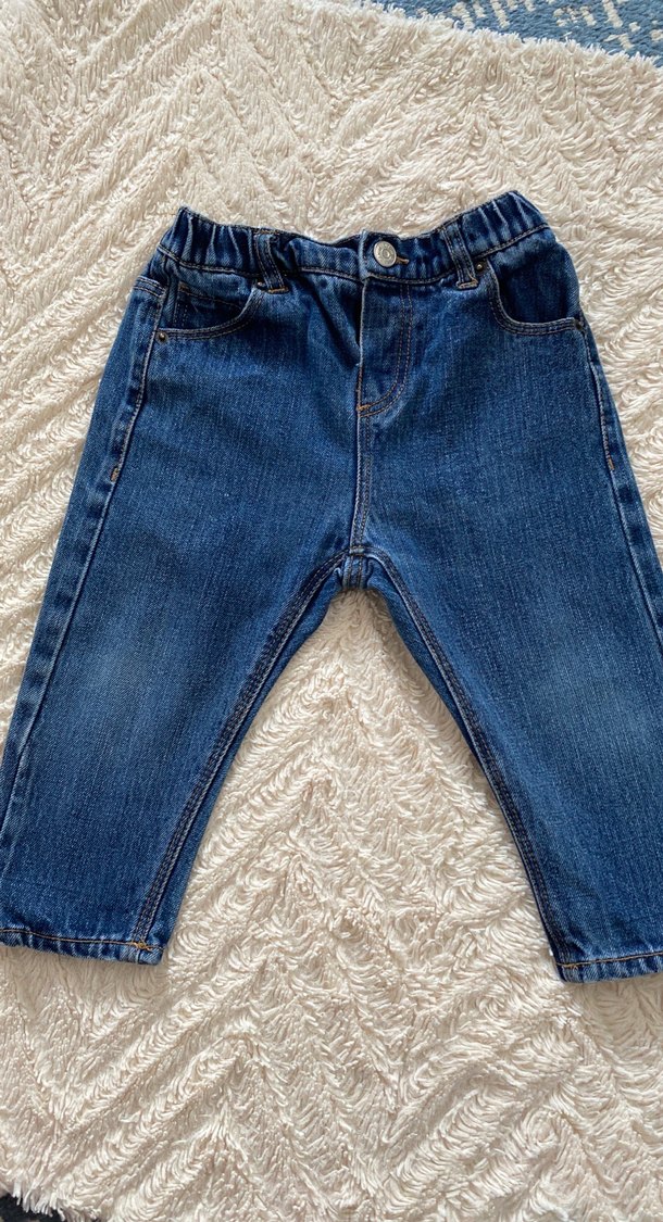 Düğmeli, regular fit erkek çocuk pantolonu, mavi denim kumaştan, sade ve temel tarzda, günlük kullanıma uygun.
