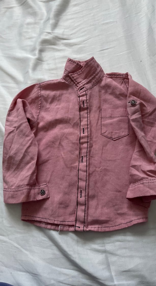 Erkek Çocuk Düğmeli Uzun Kollu Keten Gömlek