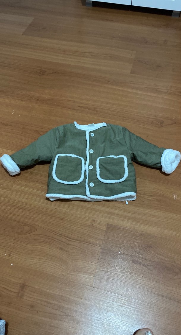 6-9 ay.bi iki defa anca giydi olmadı oğluma .Düğmeli, yuvarlak yakalı, yeşil renkli erkek çocuk montu. Yumuşak ve sıcak kumaşlı, cepli, bol kesim, sokak tarzına uygun.