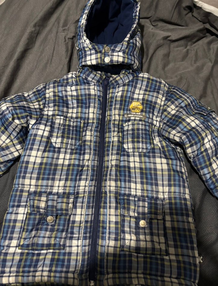 Erkek Çocuk Ekose Desenli Kapüşonlu Mont