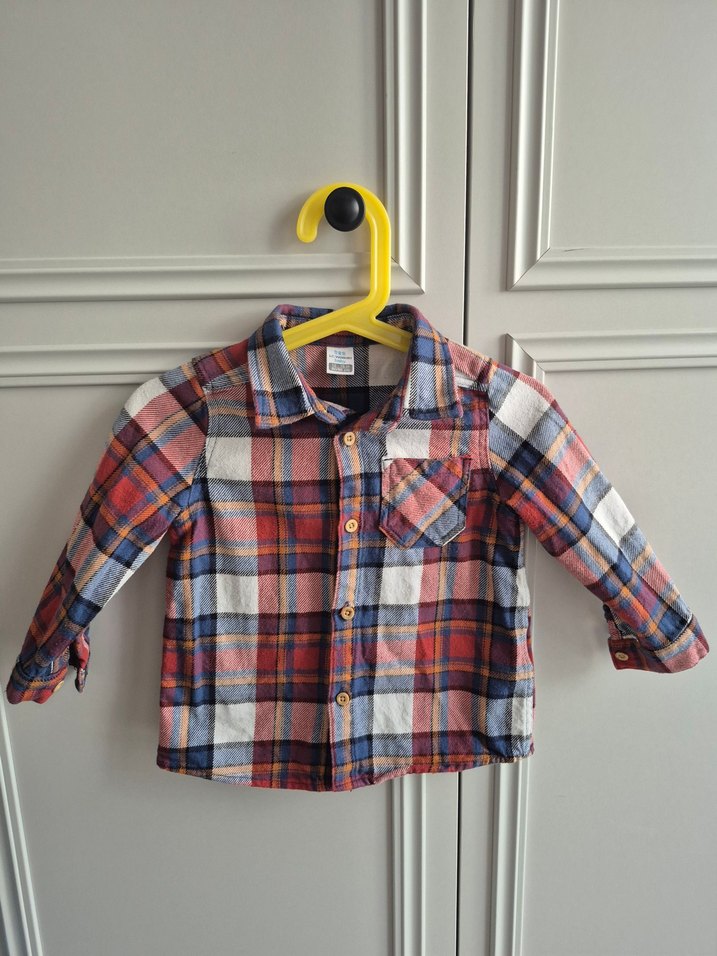 Bu erkek çocuk gömleği düğmeli, uzun kollu ve yakalıdır. Rahat kesimi ve renkli ekose deseniyle yumuşak, sıcak kumaştan üretilmiştir.