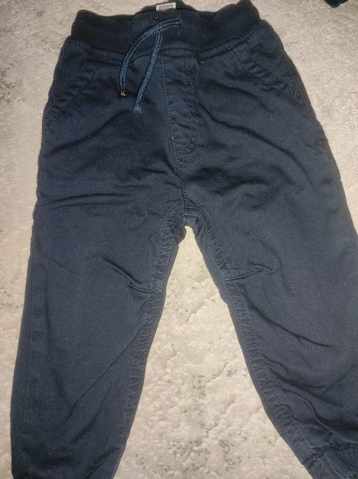 Erkek çocuklar için koyu mavi kot pantolon, elastik bel ve rahat kesime sahip, gündelik normcore tarzında. çok az kullanıldı kışlık ve kalın