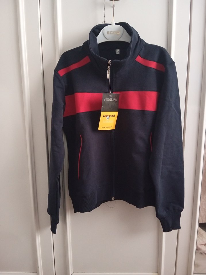 Erkekler çocuklar için fermuarlı, cepli üst eşofman Koyu kırmızı ve siyah baskılı, günlük sokak stiline uygun. Marka temsilidir.