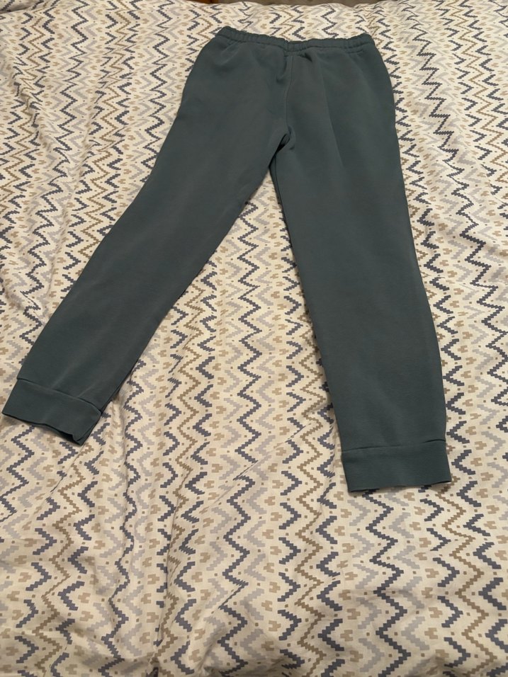 Turkuaz-gri renkte, yumuşak, erkek ya da kız çocuk için eşofman altı. Dizleri çıkmamış ancak sıfır ayarında da değil. Çok hafif diyebilirim. Hiç bir defosu kusuru yok. Çocuk boyu 140-146 cm olanlar için uygun.