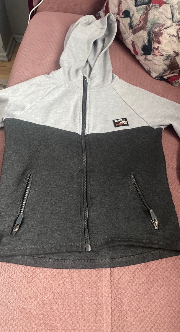 Erkek çocuklar için fermuarlı, cepli ve baskılı detaylı, uzun kollu ve bisiklet yakalı, yumuşak ve sıcak kumaştan yapılmış gri sweatshirt.