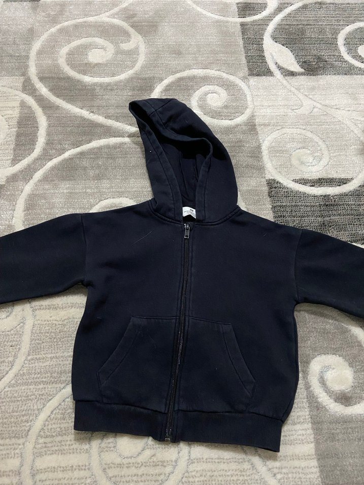 Erkek çocuklar için fermuarlı, kapüşonlu ve uzun kollu, yumuşak ve sıcak kumaştan yapılmış koyu gri renkli sade sweatshirt. Streetwear tarzına uygundur.