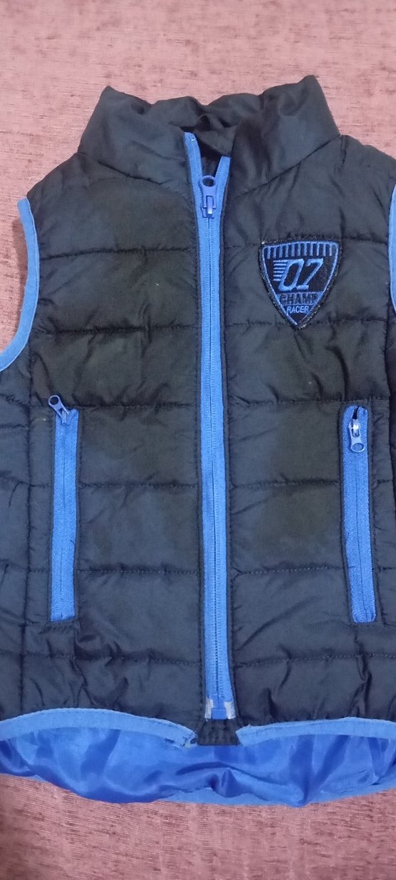 Erkek Çocuk Fermuarlı Mavi Biker Yelek