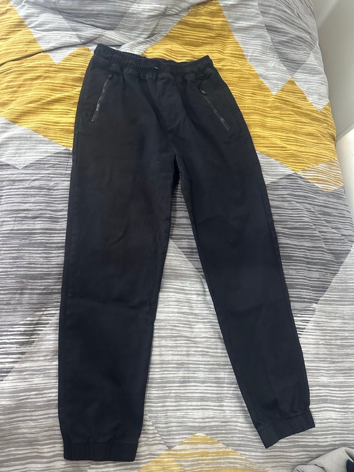 Fermuarlı cepleri ve rahat kesimiyle koyu renkli sentetik kumaştan erkek çocuk pantolonu. ️ LCW 12-13 yaş siyah renk