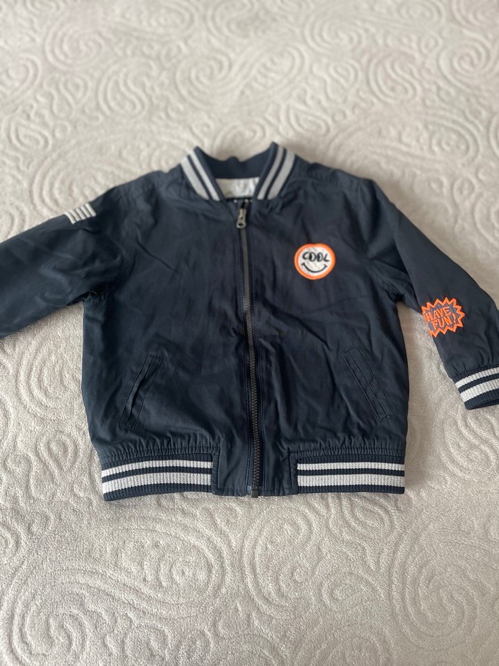 Erkek çocuklar için fermuarlı, fitted kesim ve bisiklet yaka detaylı ceket. Yumuşak dokulu kumaş ve baskılı desenlerle içi gri astarlı , mevsimlik trend sokak stili.