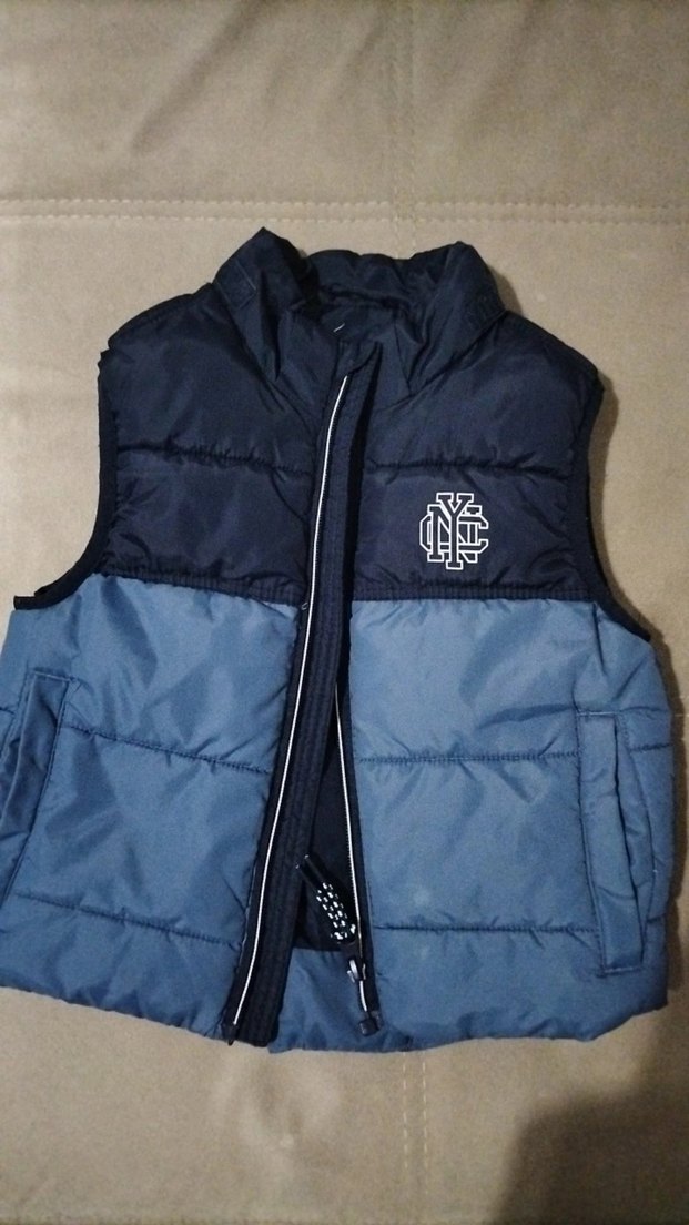 Yüksek yakalı, fermuarlı erkek çocuk yeleği. Mavi ve gri tonlarda, baskılı desenli, yumuşak ve sıcak kumaştan, dar kesim. Sokak stili için uygun, sayılı giyildi yaş olarak 2.3.4 yaşa kadar olur