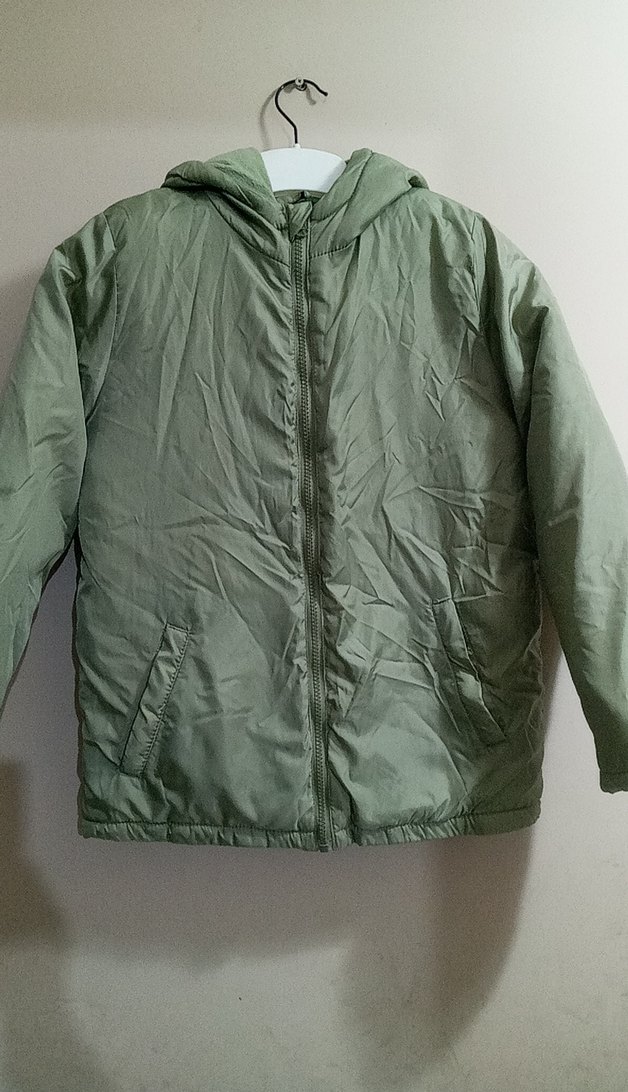 Erkek çocuklar için fermuarlı, bol kesim yeşil mont. Yumuşak ve sıcak kumaştan, sade tasarımlı, sokak stiline uygun.
