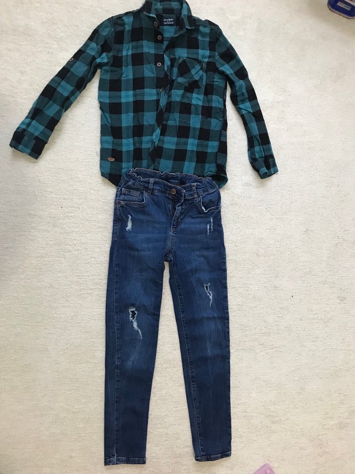 Erkek çocuk gömlek , jean 8-9 yaş gömlek ve jean. Sayılı giyildi, sorunsuz , temiz.