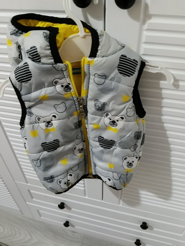 Erkek Çocuk Gri Baskılı Fermuarlı Yelek