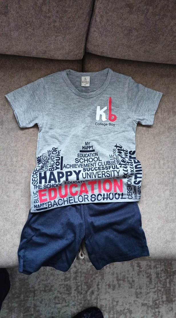 Erkek Çocuk Gri Baskılı kısa kollu şort takım