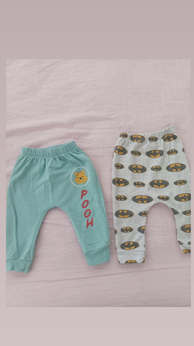 Yumuşak ve sıcak kumaştan, gri pastel renkli, baskılı desenli, bol kesim erkek çocuk pantolonu. Düğme detaylı ve lastikli bel.