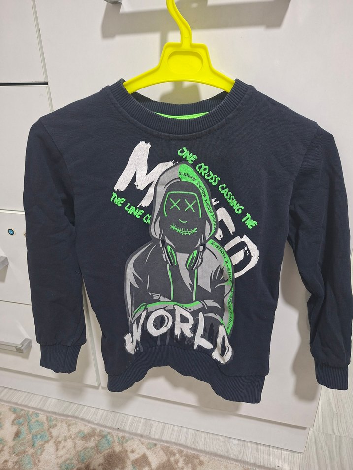 Erkek çocuk için yuvarlak yakalı, uzun kollu, bol kesim gri baskılı sweatshirt. Yumuşak ve sıcak kumaştan örme detaylıdır. Sokak tarzı için uygundur.