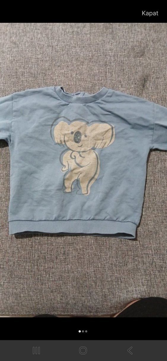 Gri renkli, uzun kollu, bol kesim erkek çocuk sweatshirtü. Yumuşak kumaştan yapılmış, koala baskılı ve düğmeli detaylıdır.