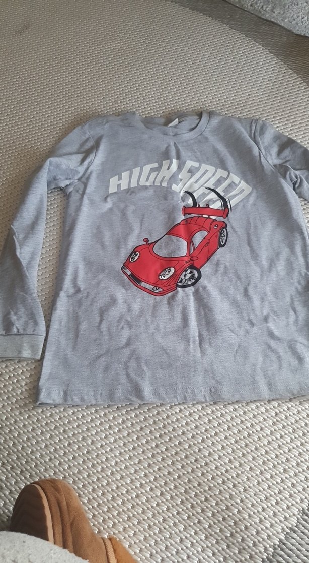 Erkek çocuklar için uzun kollu, yuvarlak yaka ve bol kesim gri sweatshirt. Sentetik kumaştan, kırmızı araba baskısı ve "HIGH SPEED" yazısı bulunur. sıfır ürün hediye geldi