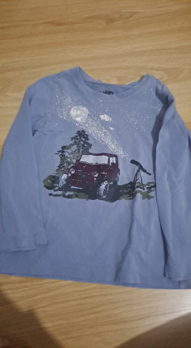 Erkek çocuk için uzun kollu, yuvarlak yaka, bol kesim sweatshirt. Yumuşak ve sıcak kumaştan, gece gökyüzü temalı baskılı desenlidir.
