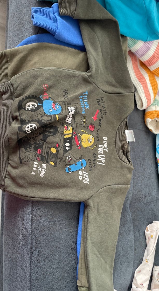 Yumuşak ve sıcak fleece kumaştan yapılmış, gri renkli, baskılı sokak stili erkek çocuk sweatshirtü. Uzun kollu, bisiklet yaka ve cırt cırt detaylıdır.