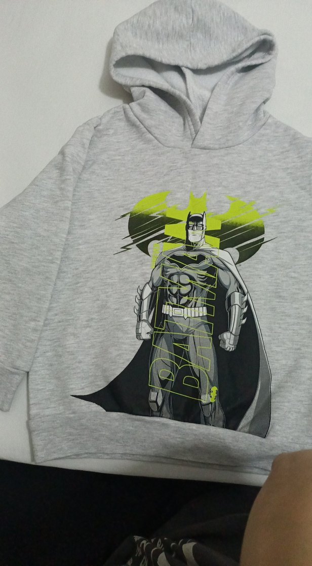 Gri, uzun kollu, bisiklet yaka ve baskılı Batman figürlü erkek çocuk sweatshirtü. Sentetik kumaştan, trend ve rahat bir tarz sunar.