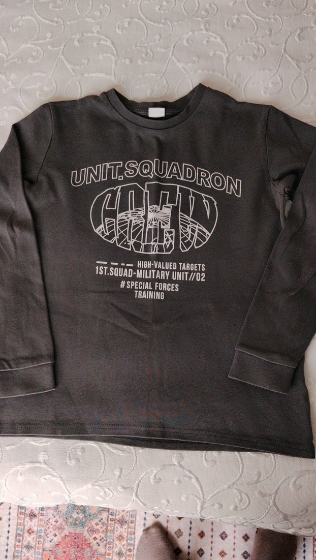 Erkek çocuklar için uzun kollu, bisiklet yaka ve bol kesim gri sweatshirt. Askeri tarz baskılı, yumuşak ve sıcak kumaştan üretilmiştir. sadece biraz rengi sormuştur