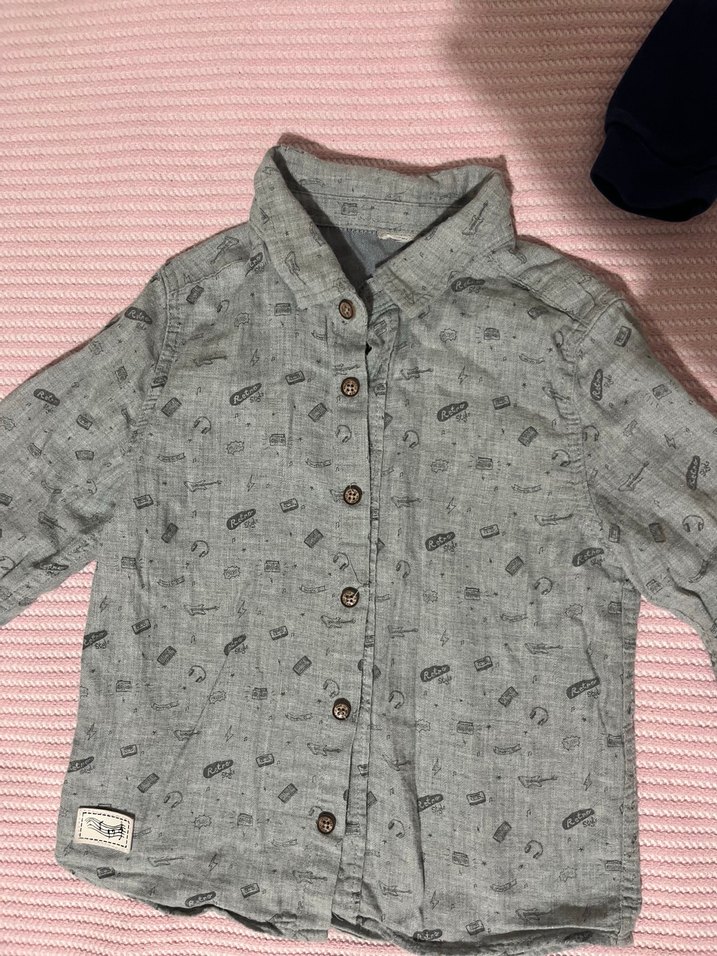 Pamuklu kumaştan yapılmış, uzun kollu gri baskılı erkek çocuk gömleği, düğmeli ve regular fit kesime sahiptir. Nota desenli 2 yaş