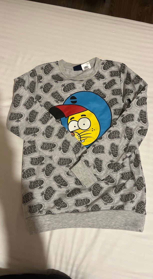 Erkek çocuklar için uzun kollu, bisiklet yaka ve bol kesim gri renkli sweatshirt. Üzerinde baskılı desenler ve renkli karakter bulunur. Yumuşak, sıcak kumaştan düğmeli detaylıdır.