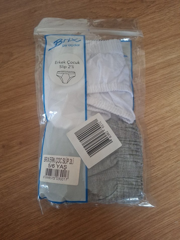 5-6 yaş erkek çocuk için gri ve beyaz renkte, rahat ve basic tasarımlı 2'li slip külot.Marka lcw değil