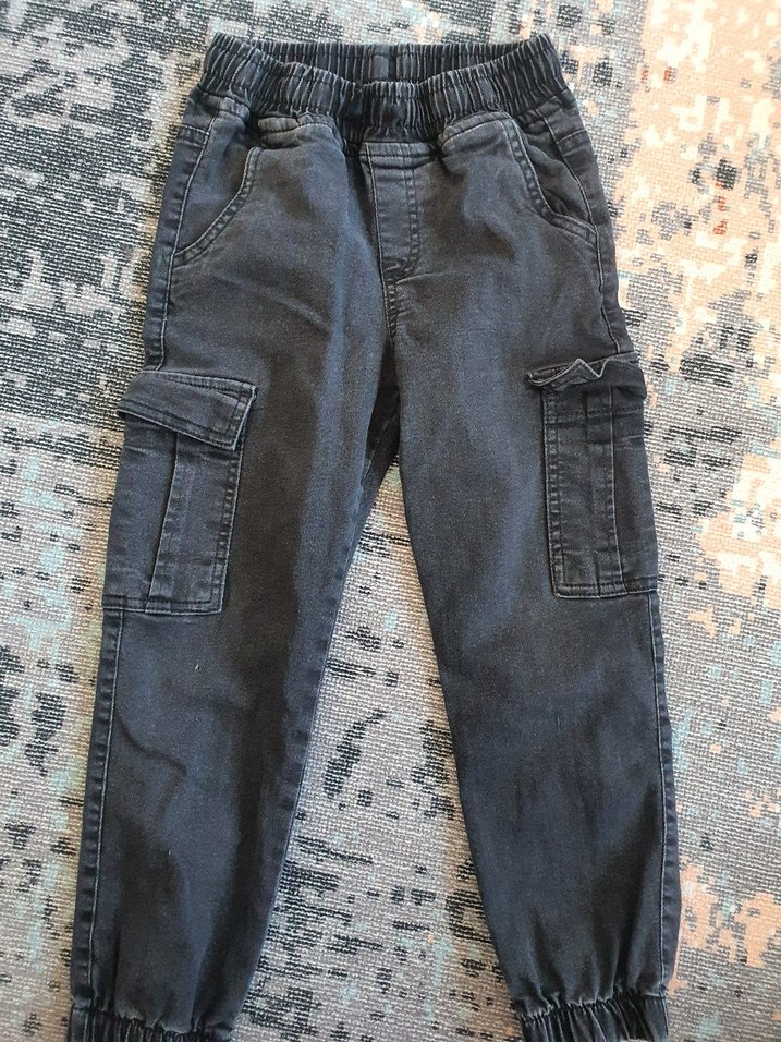 Erkek çocuklar için bel kemerli, bol kesim gri kot kargo pantolon. Elastik paçalar ve rahat sokak stili sunar.bir kere bayramda gıyıldı sonra kucuk geldı