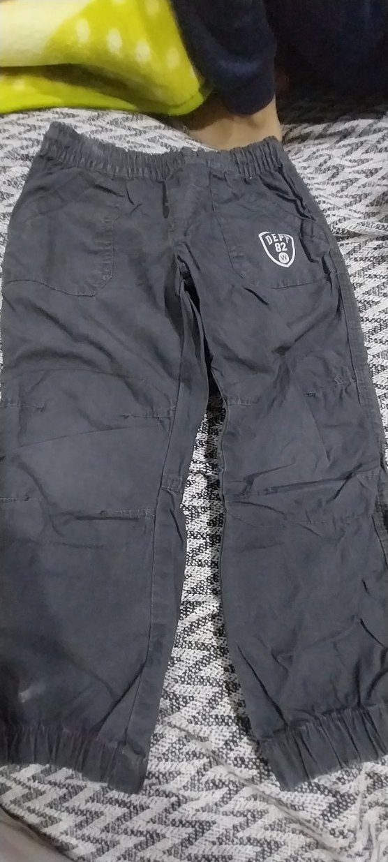 Gri renkte, bol kesim, kemerli erkek çocuk keten pantolonu. Cepte küçük bir baskı detayı bulunur, sokak stili için uygun.ince mevsimlik