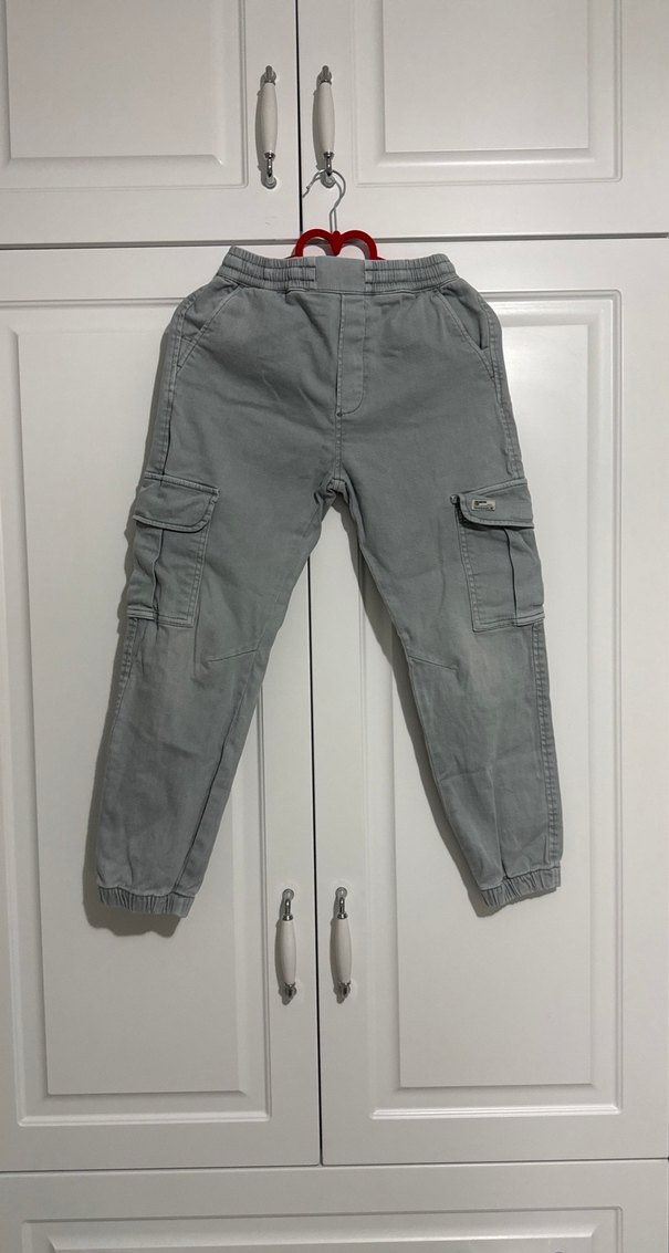 Erkek çocuklar için bol kesim, gri denim pantolon. Cep detaylarıyla sokak stiline uygun rahat ve kullanışlı tasarım. Çok rahat defosuz maksimum 140 cm