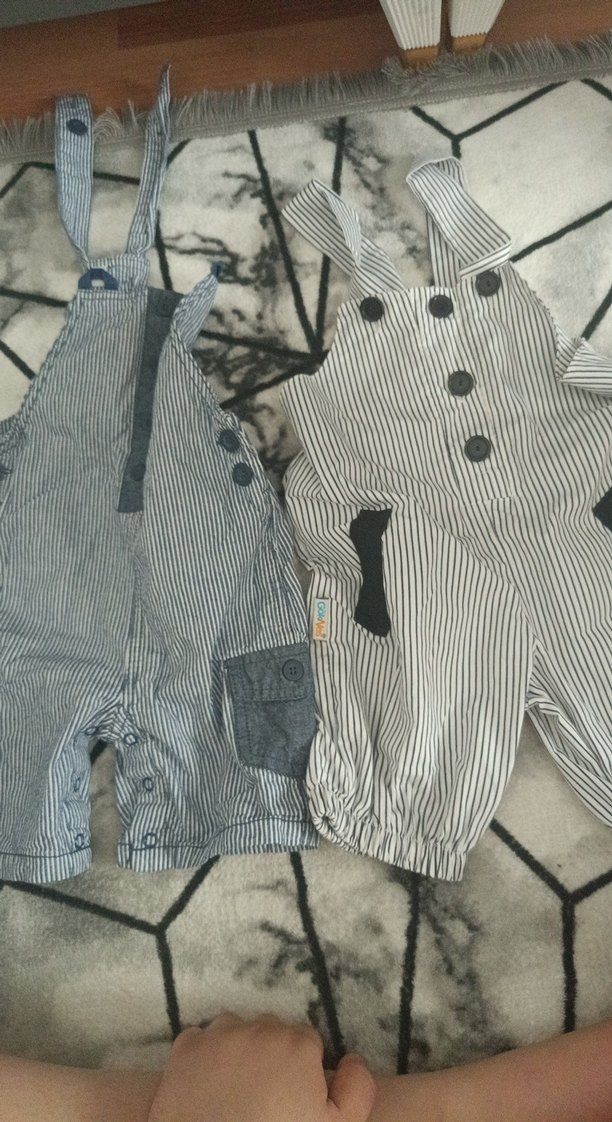 Erkek Çocuk Gri Çizgili Kot Salopet