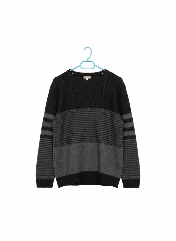Bu erkek çocuk kazak, rahat kesim, yuvarlak yaka ve uzun kolludur. Yumuşak yünden örülmüş, gri çizgili desenlerle normcore tarzda. 10 ve 11 yaş Boy uzunluğu ı 60 cm , koltuk altı 24 cm , Göğüs altı 54 cm ,