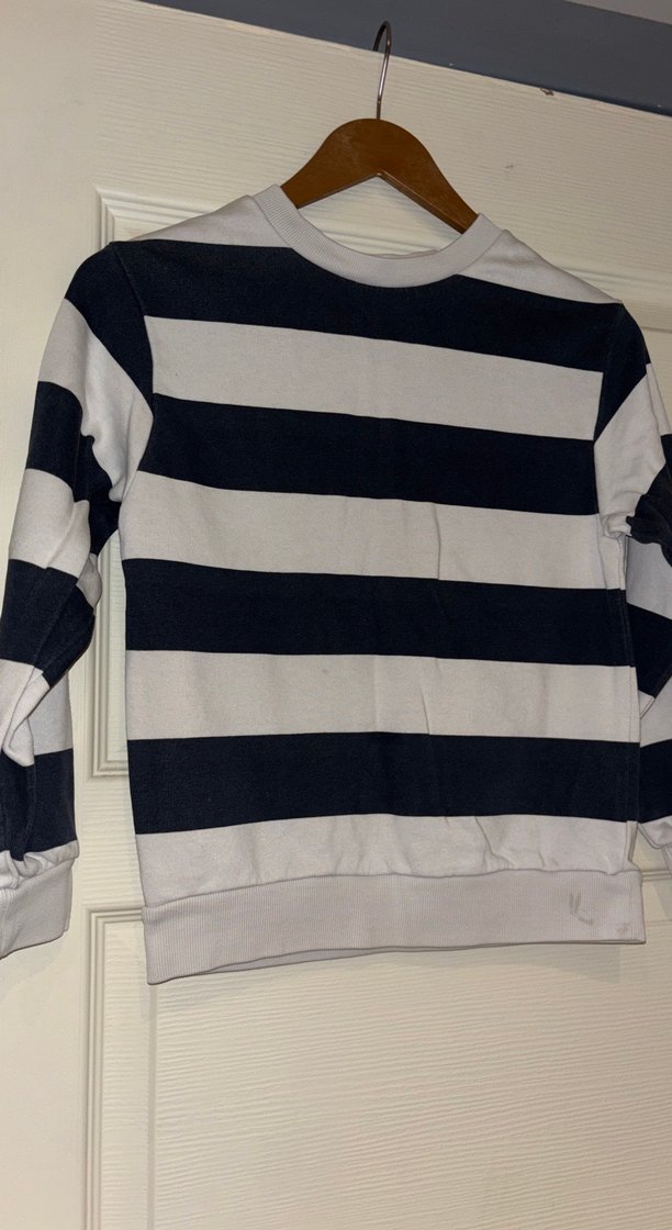 Erkek çocuk için uzun kollu, yuvarlak yakalı, bol kesim gri çizgili sweatshirt. Yumuşak ve sıcak kumaştan üretilmiştir, rahat bir sokak stili sunar. Defosunu ekledim belki yıkanınca çıkabilir bir bilgim yok