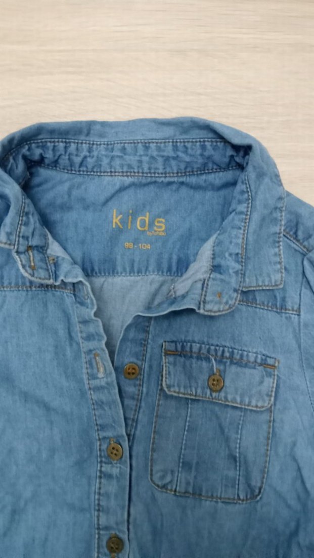 Erkek çocuklar için bol kesim, düğmeli, yakalı ve uzun kollu denim gömlek. Gri-mavi tonlarında, baskılı detaylı, rahat sokak stili.#gap#mavi#elbise#etek