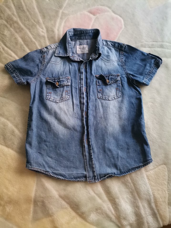 Gri denimden üretilmiş, kısa kollu, yakalı ve düğmeli, bol kesim erkek çocuk gömleği. Sokak stili için uygundur.