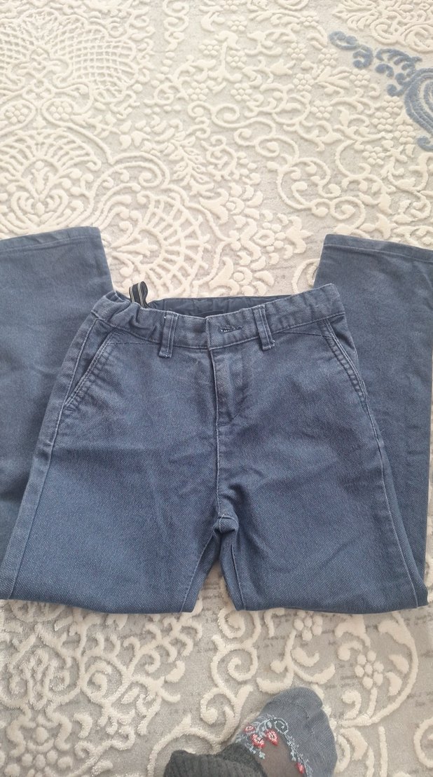 Erkek çocuklar için düğmeli, gri renkte düz desenli, normal kesim denim pantolon. defoeme yok yepyeni marka temsili