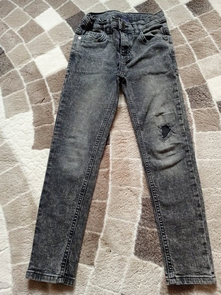 Erkek çocuklar için gri denim pantolon, regular fit kesim ve tokalı detaylarla. Sokak modasına uygun rahat bir model.