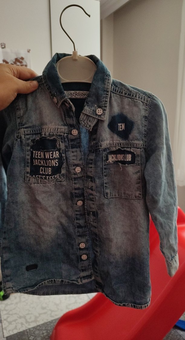 Erkek Çocuk Gri Denim Uzun Kollu Gömlek