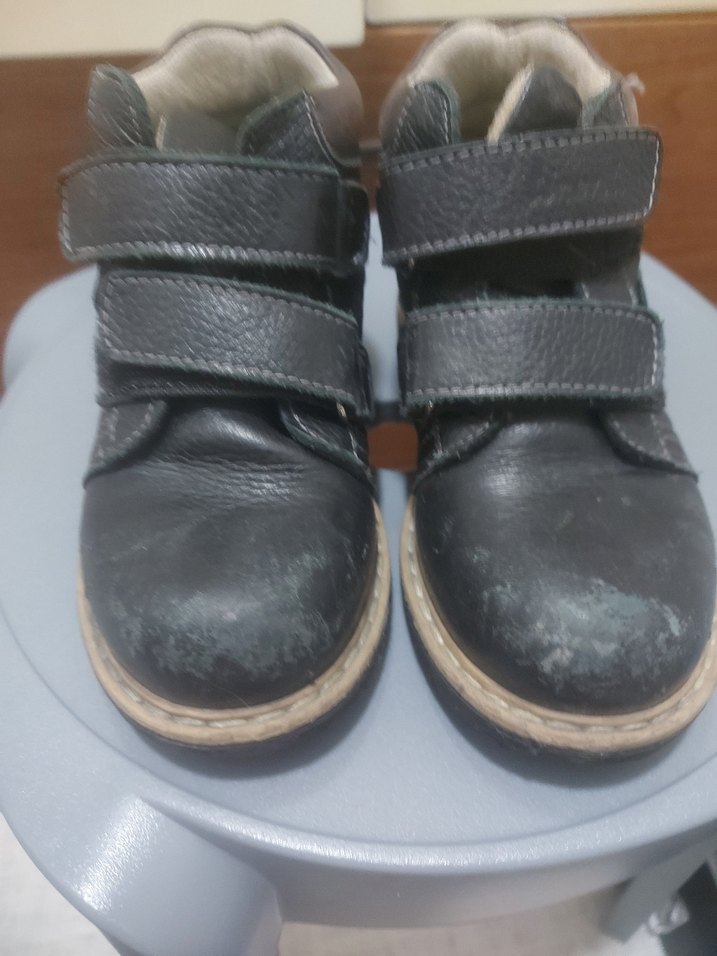 Tokalı kayışlara sahip gri deri erkek çocuk botları, sade ve klasik tasarıma sahiptir. ortapedik