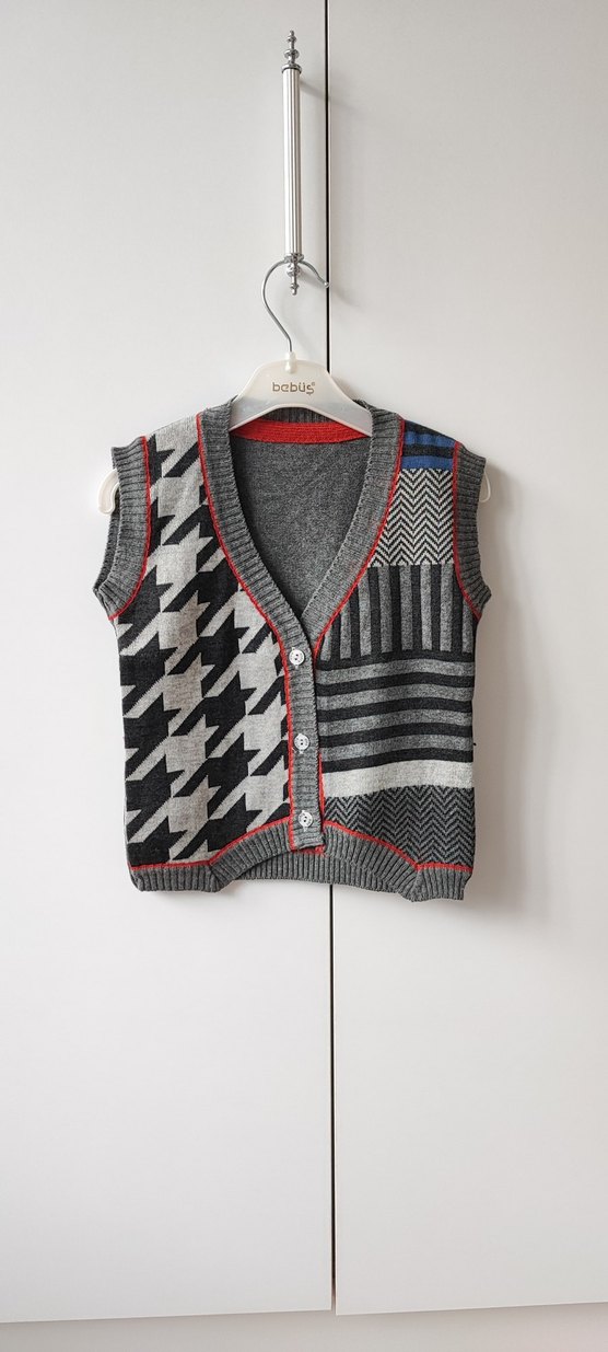 erkek cocuk Gri Desenli Kısa Triko Süveter