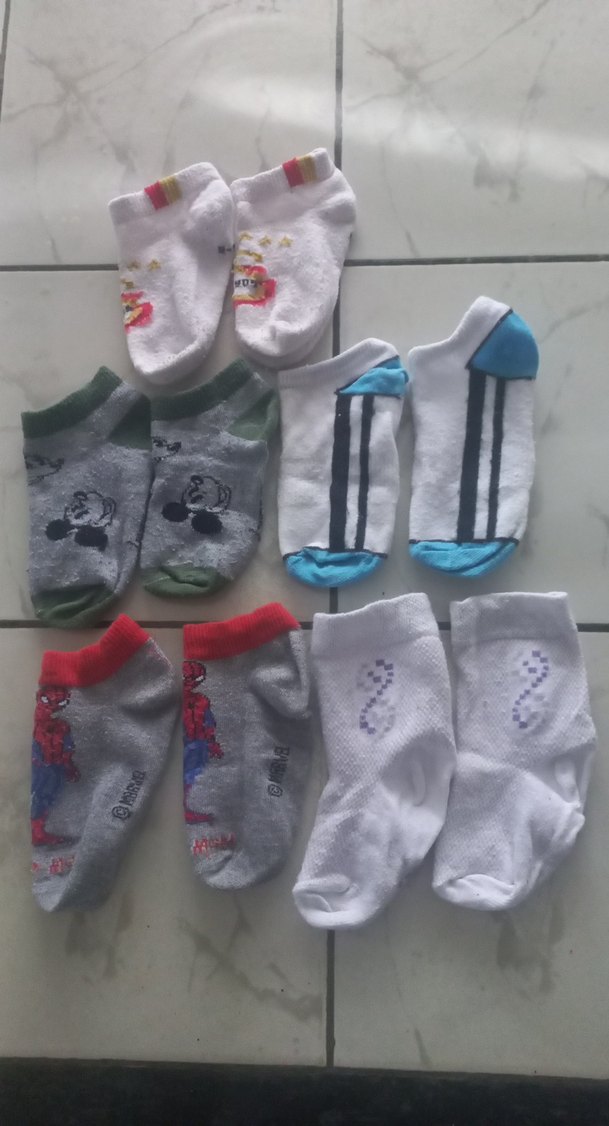 Gri ve beyaz tonlarında, sade ve çizgi film desenli erkek çocuk çorapları seti. Ayak bileği boyunda ve rahat kullanımlı.