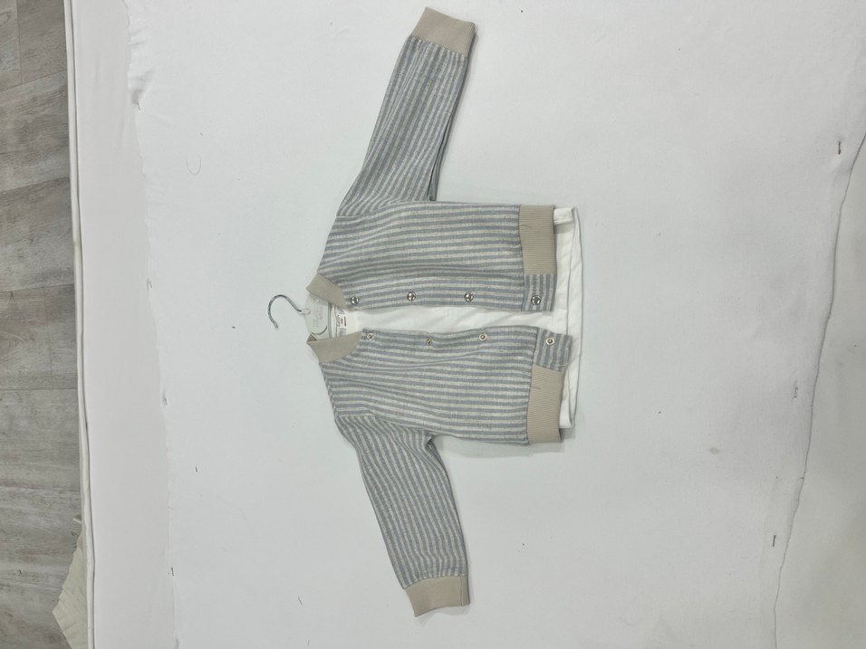 Erkek çocuk için düğmeli, uzun kollu, keten kumaştan yapılmış, gri çizgili ve düz desenli, regular fit hırka. İmalathaneden cocuk gıyım