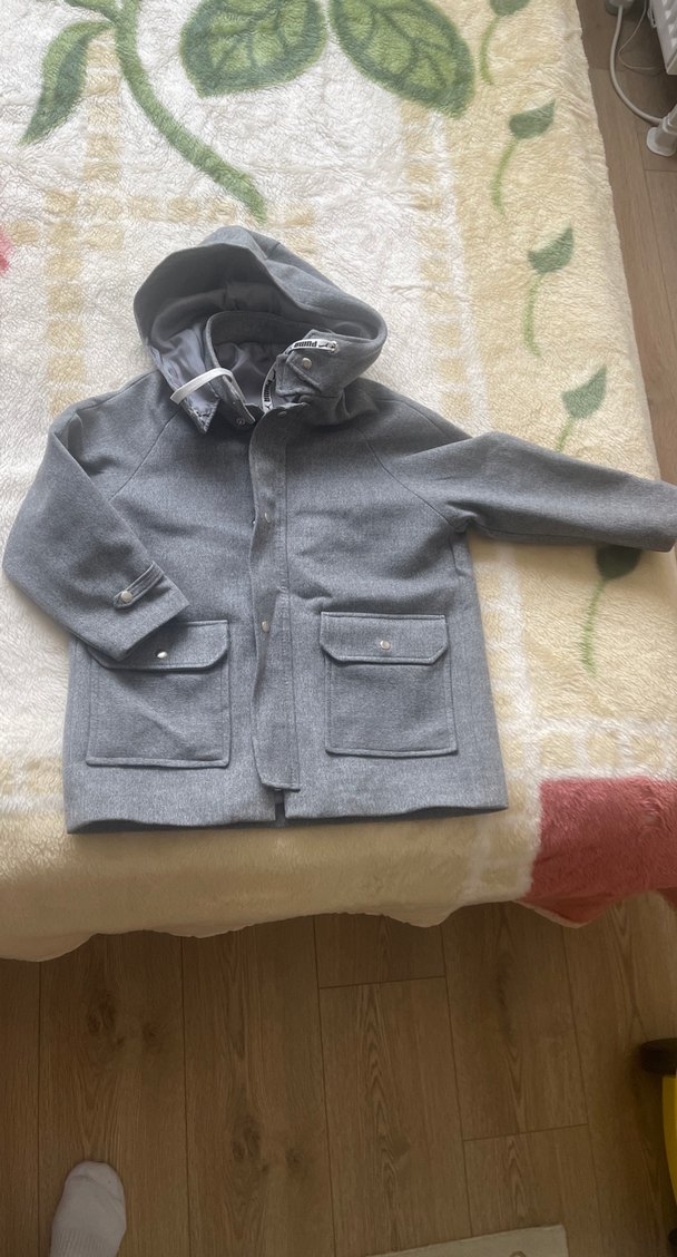 Erkek çocuk için düğmeli, gri renkte, rahat kesim ve kesik yaka detaylı street wear kaban. Yumuşak ve sıcak kumaştan üretilmiştir. El dikimi .6/7 yaş uyumlu