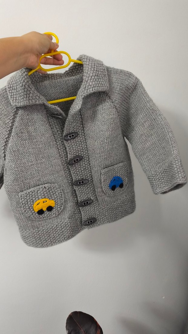 2,2,5,3 yaş erkek çocuk için Gri renkte, uzun kollu, düğmeli erkek çocuk triko hırka. yeni örüldü hiç giyilmedi düğmeleri kendimiz seçtik isterseniz değiştiredebilirsiniz. fiyat çok gelmesin ip ve düğme ücreti çıkınca gerisi el emeği ücreti.